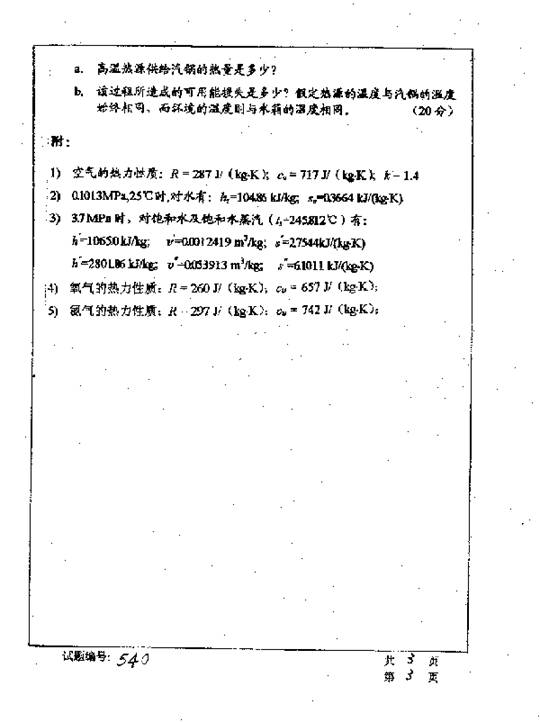 华中科技大学2001年考研真题-工程热力学二