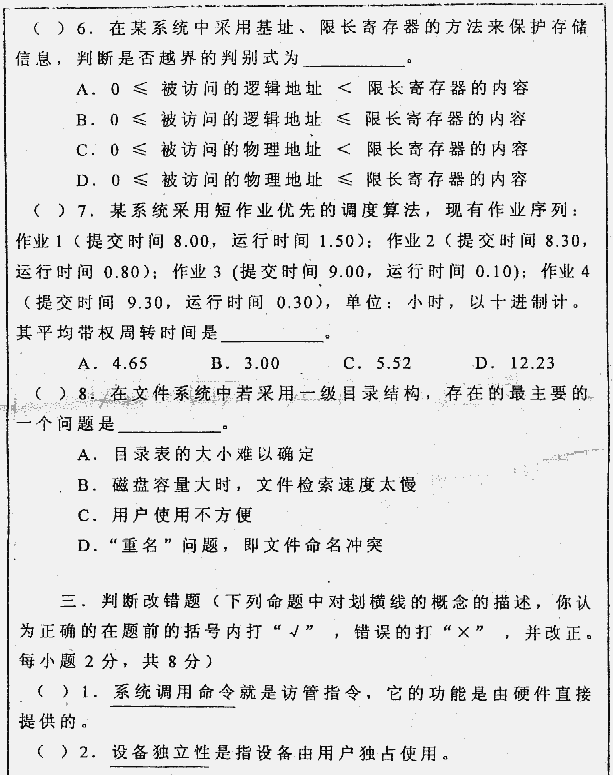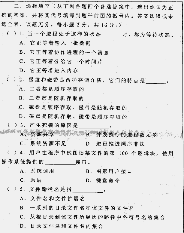华中科技大学2000年考研真题-操作系统