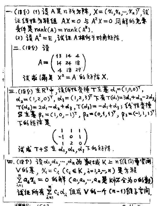 华中科技大学1999年考研真题-高等代数