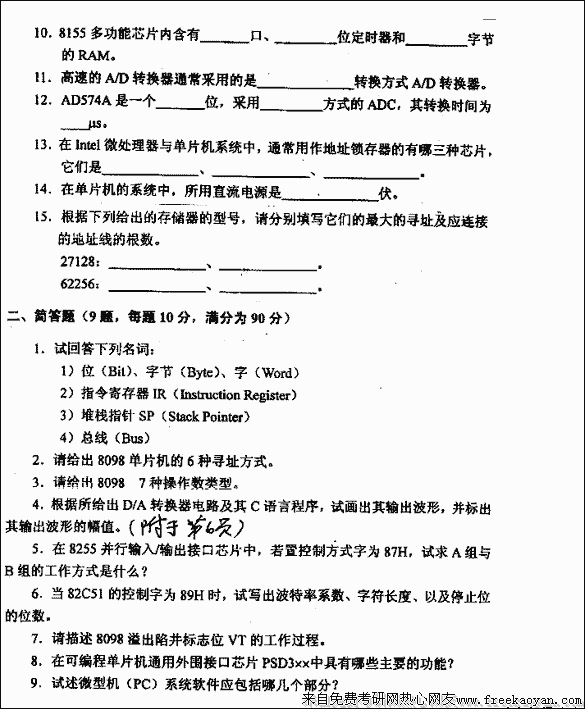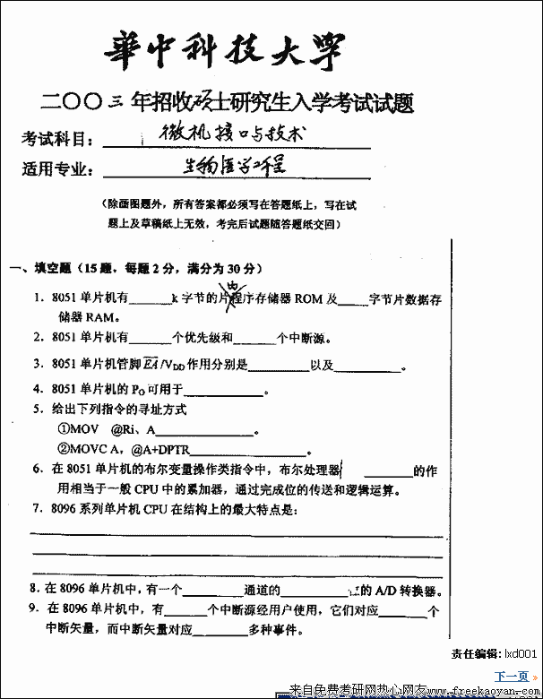 专业课考研经验 本站小编 FreeKaoyan 2018-01-22华中科技大学2002年考研真题-微机原理与接口技术