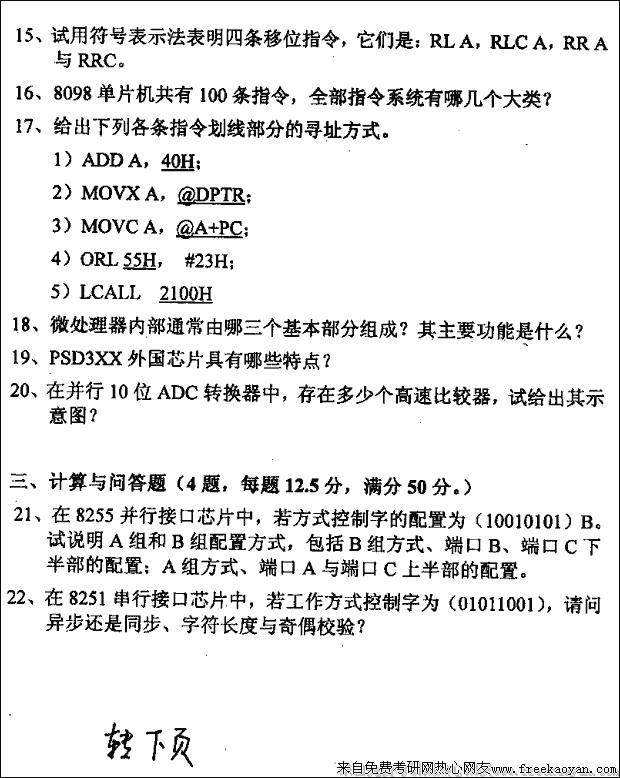 专业课考研经验 本站小编 FreeKaoyan 2018-01-22华中科技大学2003年考研真题-微机接口与技术