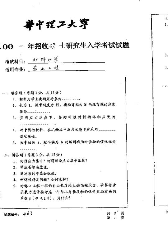 ...专业课考研经验 本站小编 FreeKaoyan 2018-01-22华中科技大学2001年考研真题-mba政治