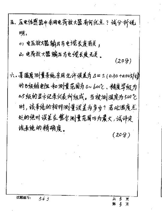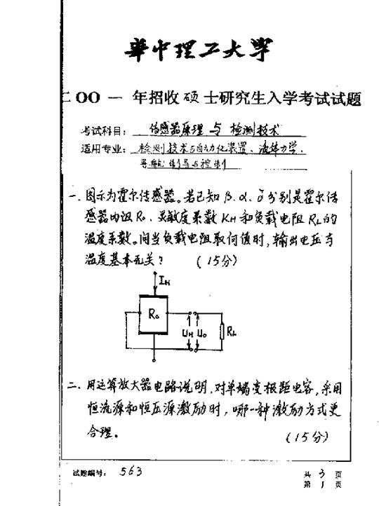 华中科技大学2001年考研真题-传感器原理与检测技术