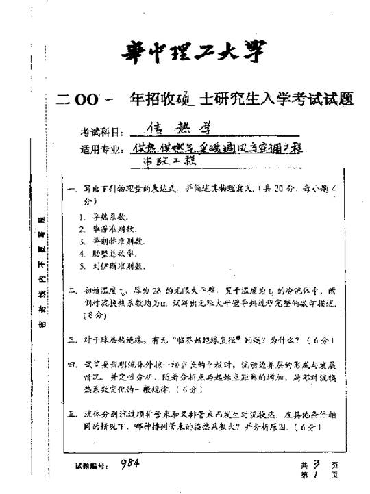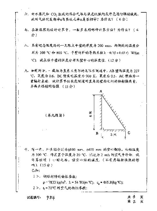 华中科技大学2001年考研真题-传热学二