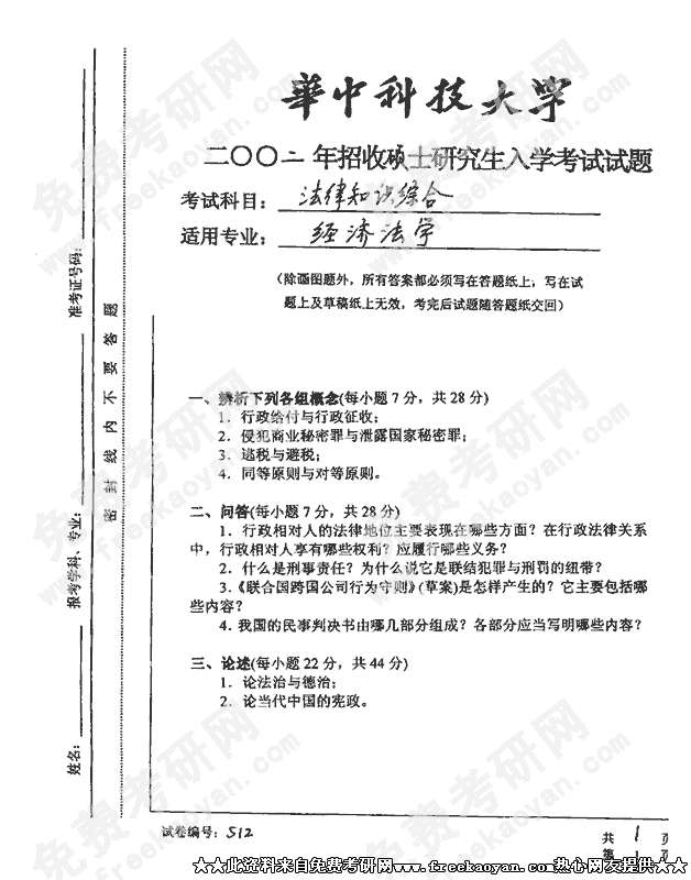 华中科技大学2002年考研真题-法律知识综合