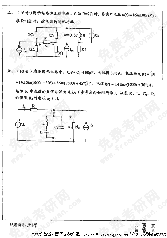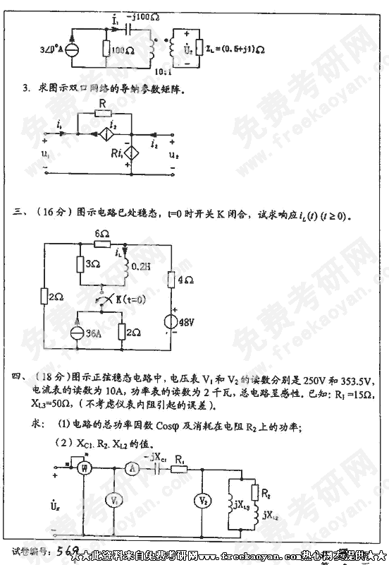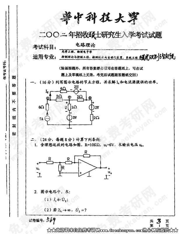 华中科技大学2002年考研真题-电路理论B