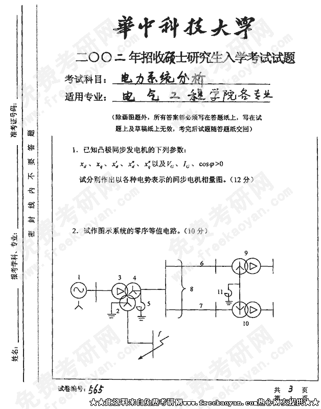 华中科技大学2002年考研真题-分析化学试卷(环境)