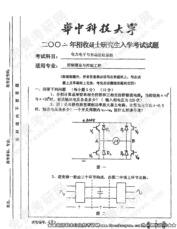 华中科技大学2002年考研真题-电力电子与自动控制系统