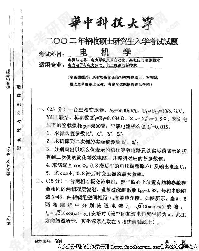 华中科技大学2002年考研真题-电力电子与自动控制系统