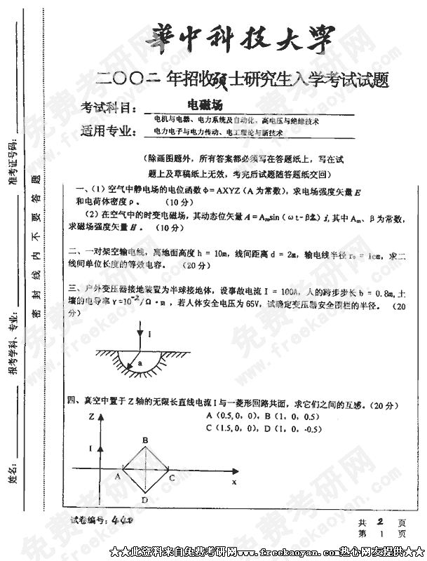 华中科技大学2002年考研真题-电磁场