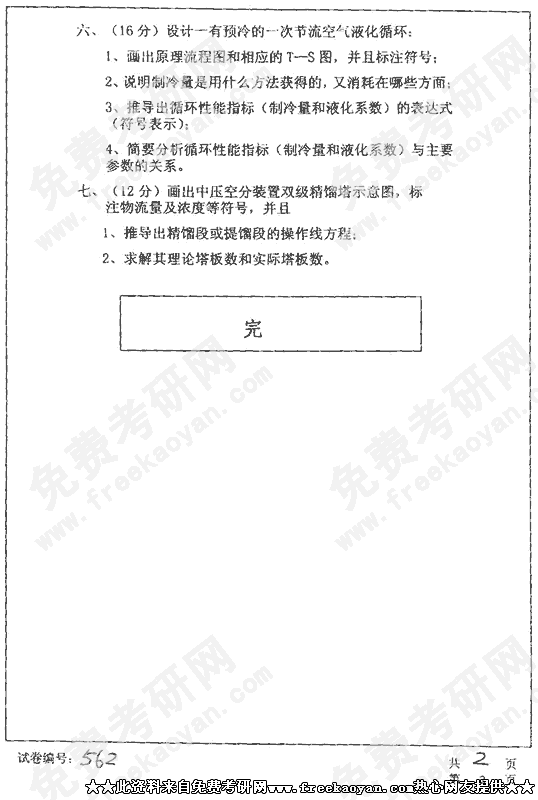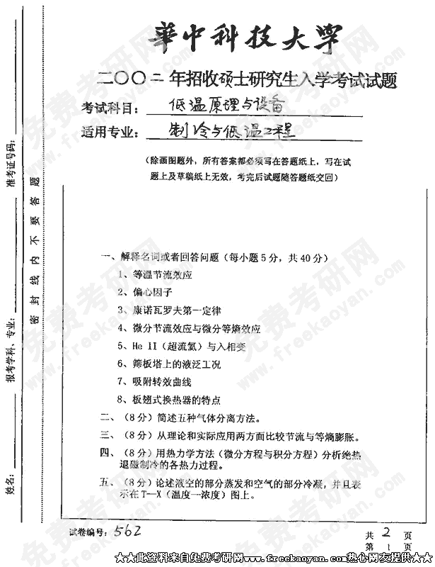 华中科技大学2002年考研真题-低温原理与设备