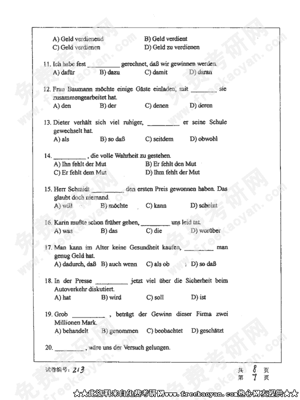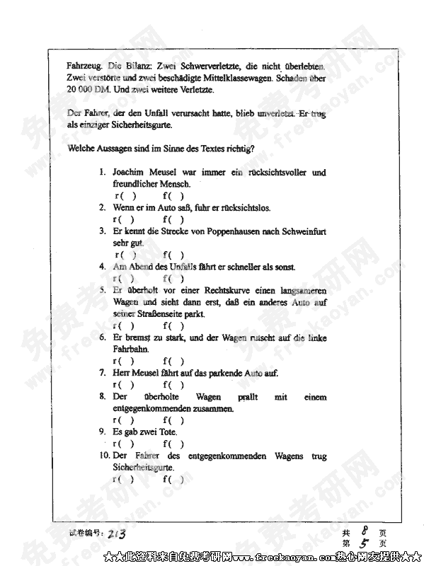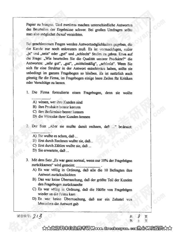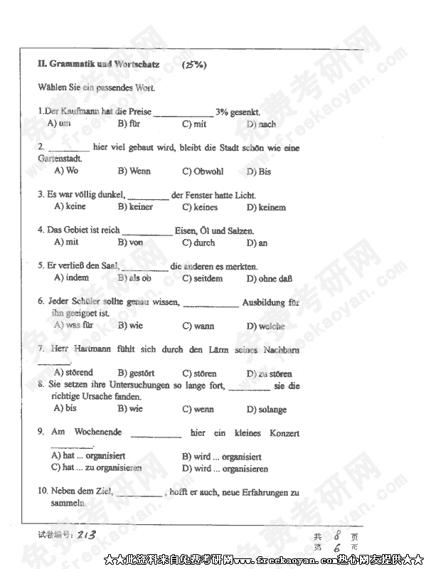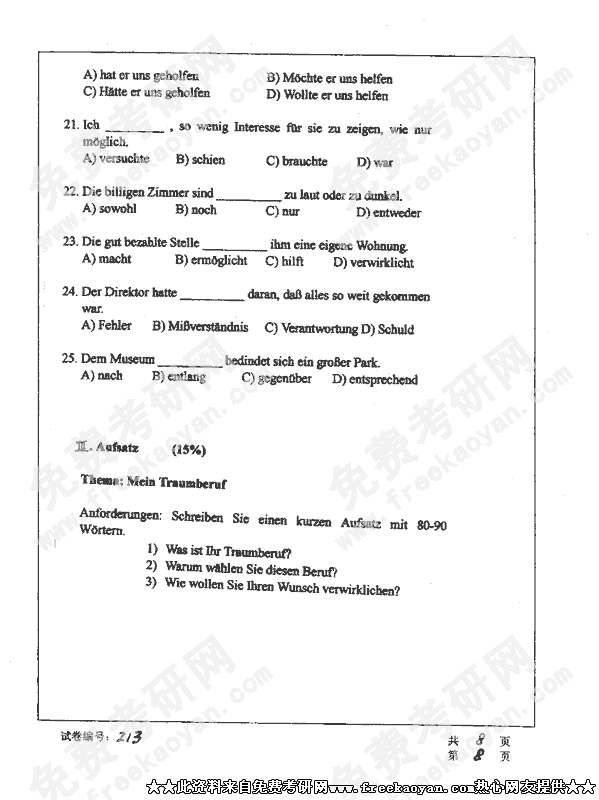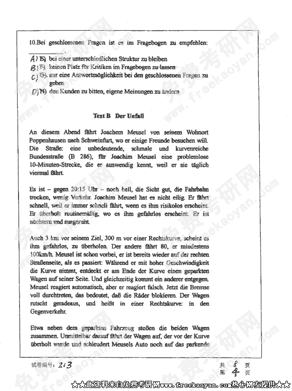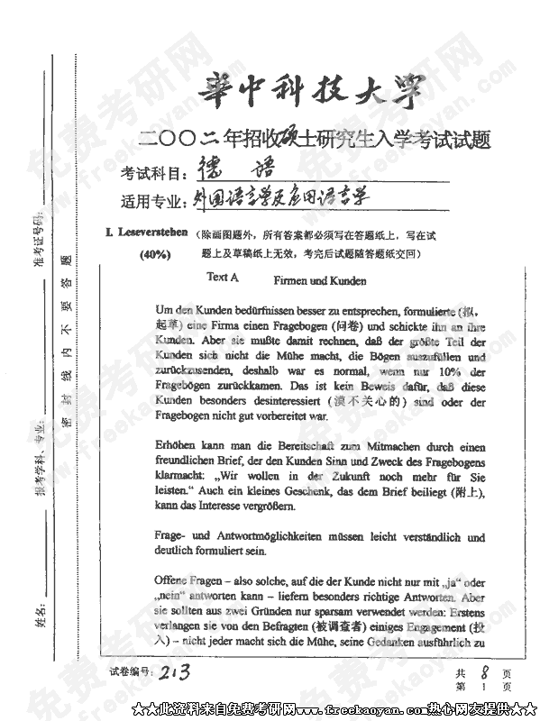 华中科技大学2002年考研真题-德语
