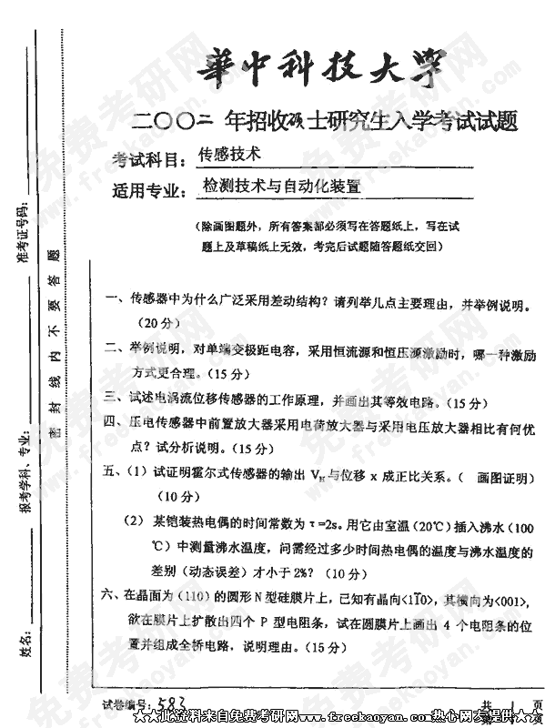 专业课考研经验 本站小编 FreeKaoyan 2018-01-22华中科技大学2002年考研真题-电力电子与自动控制系统