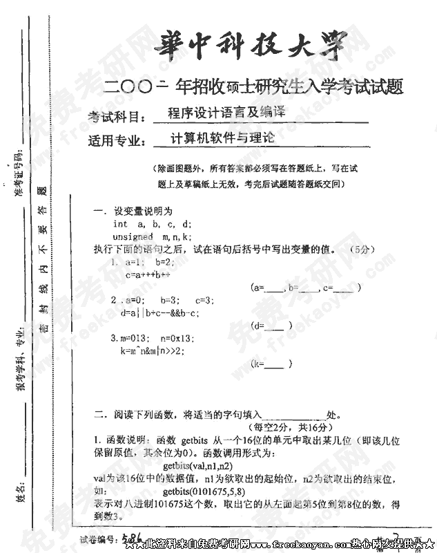 华中科技大学2002年考研真题-电力电子与自动控制系统