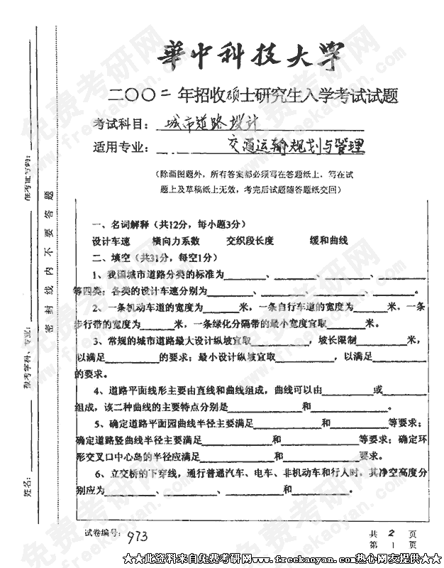 相关话题/考研真题 华中科技大学 设计 城市道路