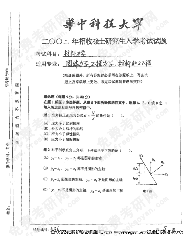 华中科技大学2002年考研真题-材料物理