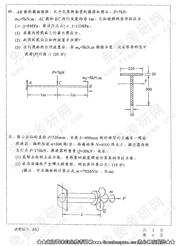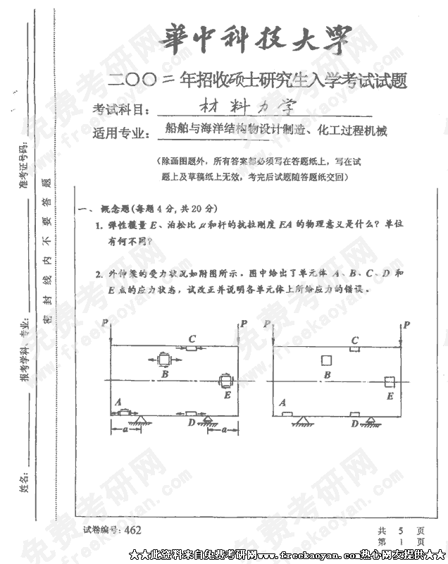 华中科技大学2002年考研真题-材料力学C