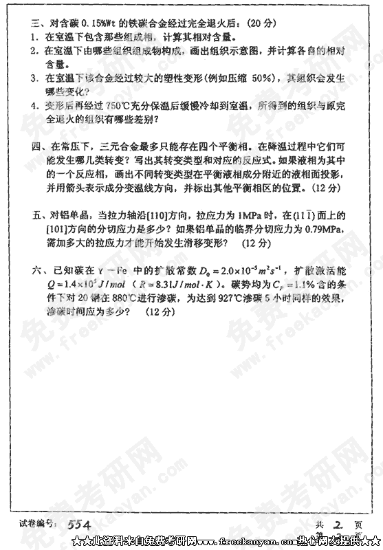 华中科技大学2002年考研真题-材料科学基础