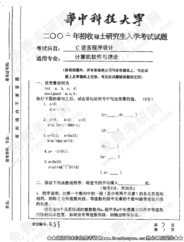 华中科技大学2002年考研真题-材料加工工程综合考试