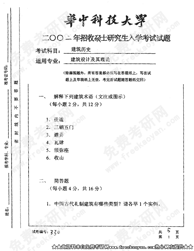 华中科技大学2002年考研真题-材料加工工程综合考试