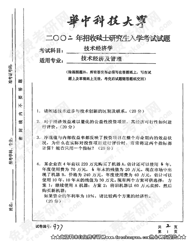 华中科技大学2002年考研真题-材料加工工程综合考试