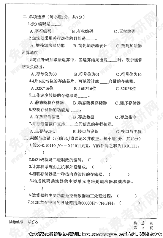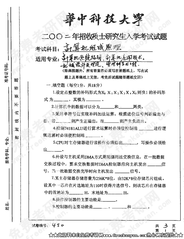 华中科技大学2002年考研真题-计算机组成原理