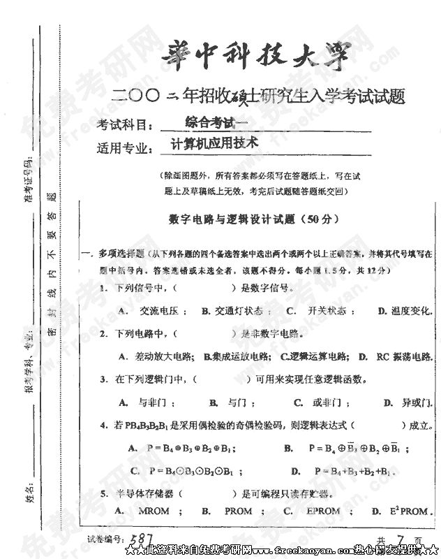 华中科技大学2002年考研真题-计算机应用技术综合考试一