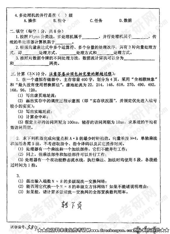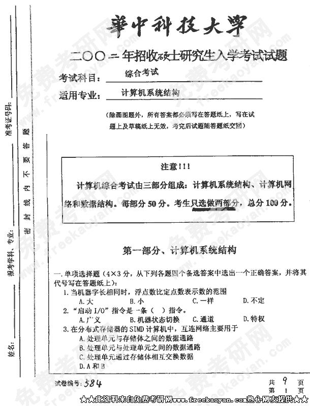 华中科技大学2002年考研真题-计算机系统结构综合考试