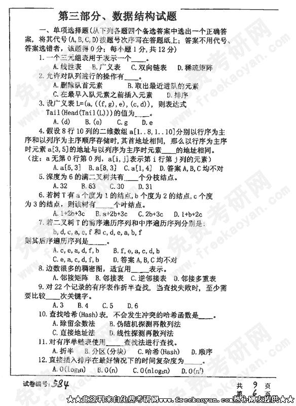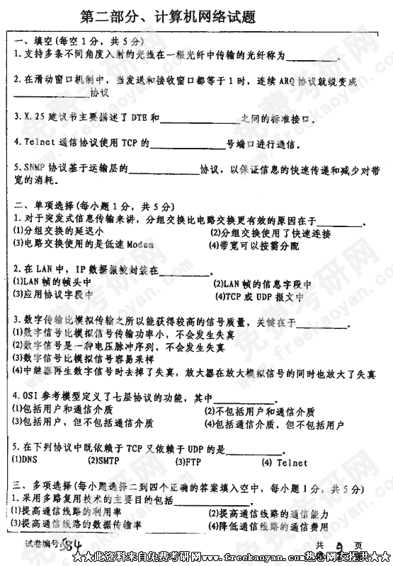 华中科技大学2002年考研真题-计算机应用技术综合考试一
