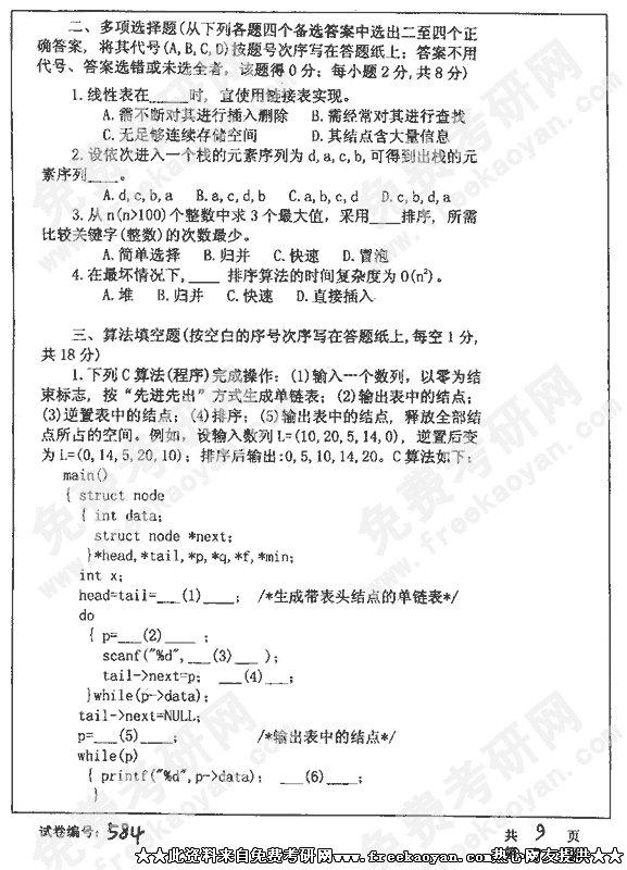 华中科技大学2002年考研真题-计算机应用技术综合考试(二)