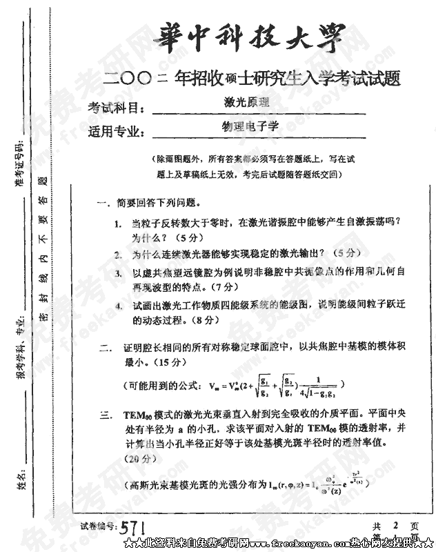 华中科技大学2002年考研真题-计算机应用技术综合考试一