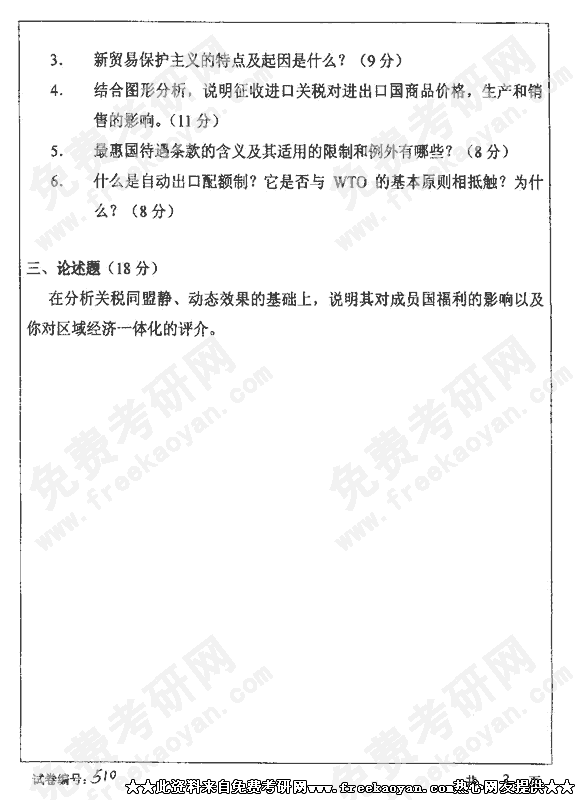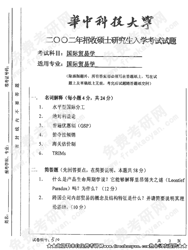 华中科技大学2002年考研真题-国际贸易学