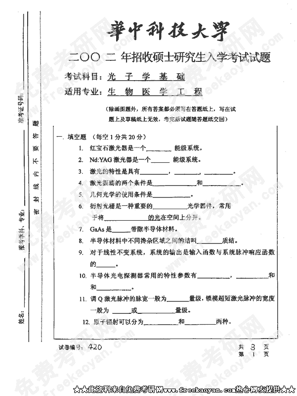 华中科技大学2002年考研真题-计算机应用技术综合考试一