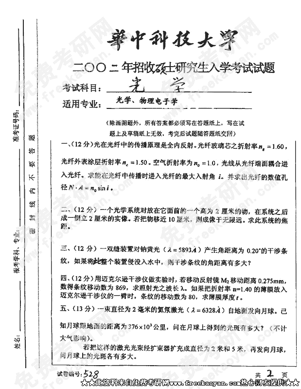 华中科技大学2002年考研真题-计算机系统结构综合考试