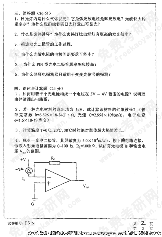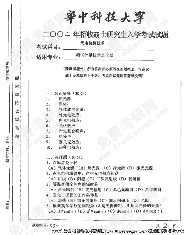 华中科技大学2002年考研真题-光电检测技术