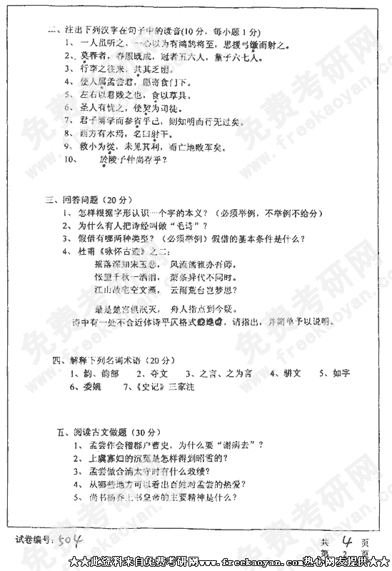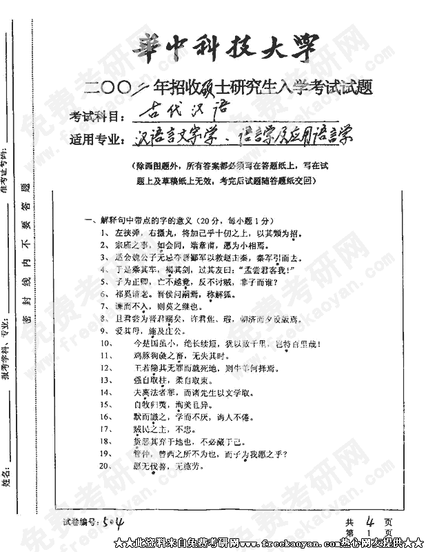 华中科技大学2002年考研真题-古代汉语