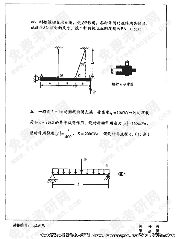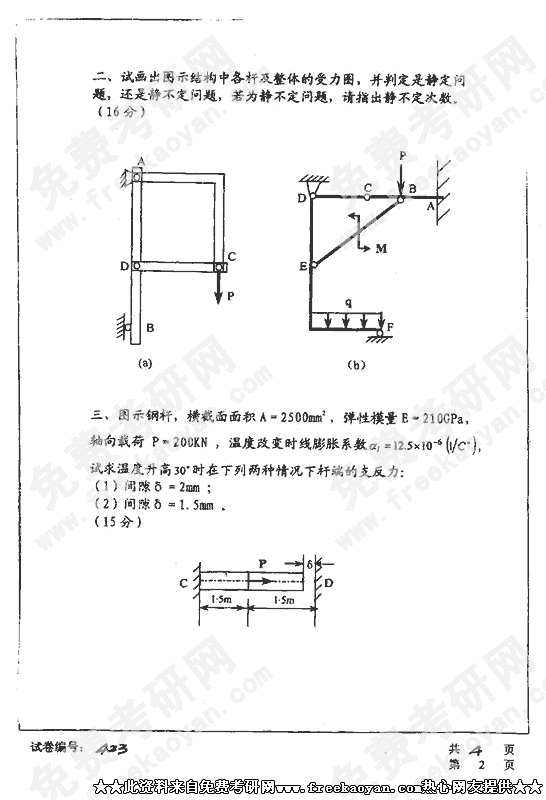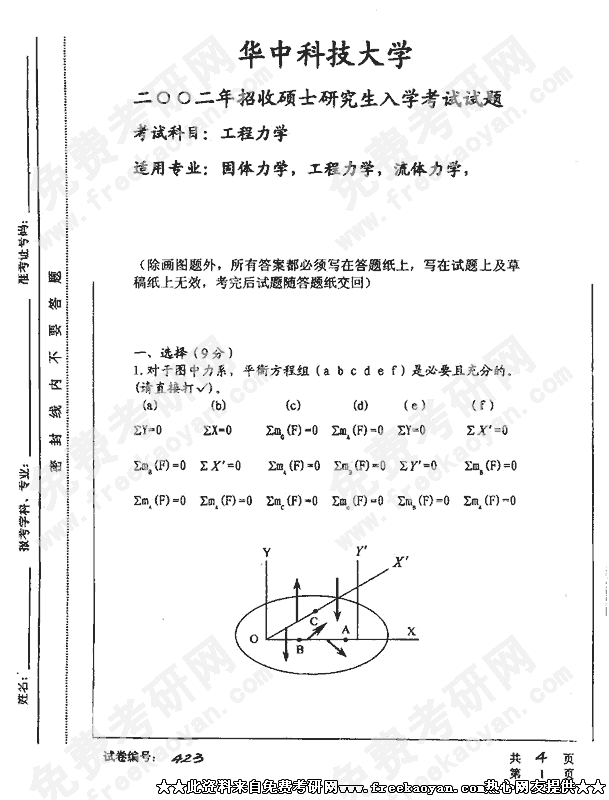 华中科技大学2002年考研真题-工程力学