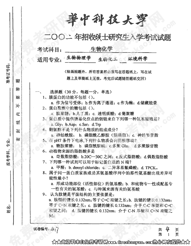 华中科技大学2002年考研真题-高级语言程序设计(C语言)