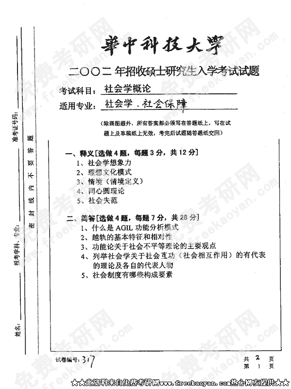 华中科技大学2002年考研真题-钢筋混凝土结构