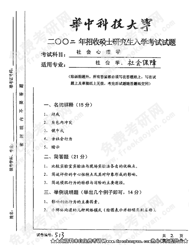 华中科技大学2002年考研真题-钢筋混凝土结构