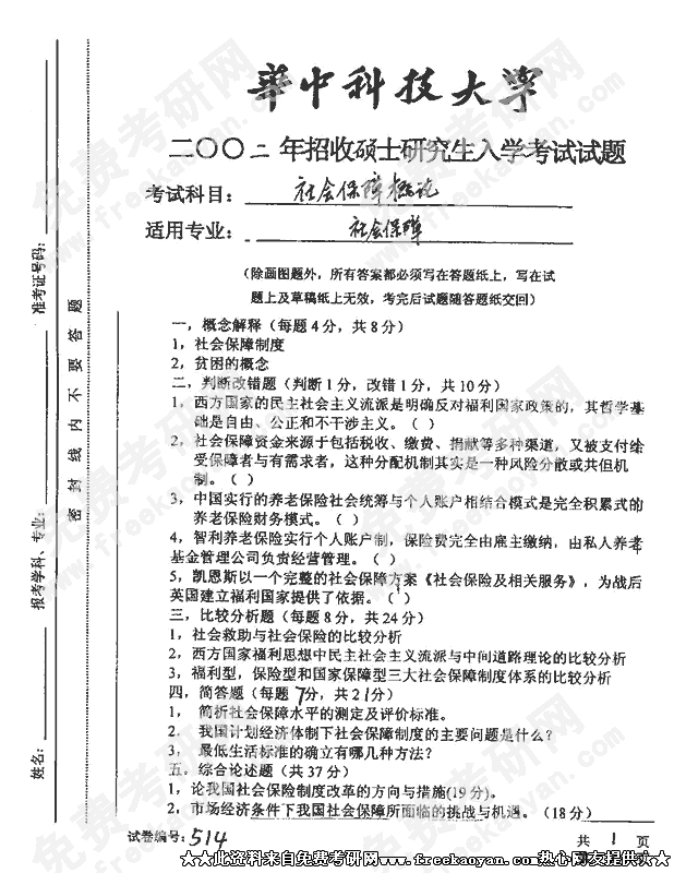相关话题/考研真题 社会保障 华中科技大学 概论