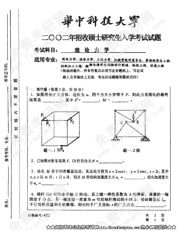 华中科技大学2002年考研真题-排水工程专业课A卷