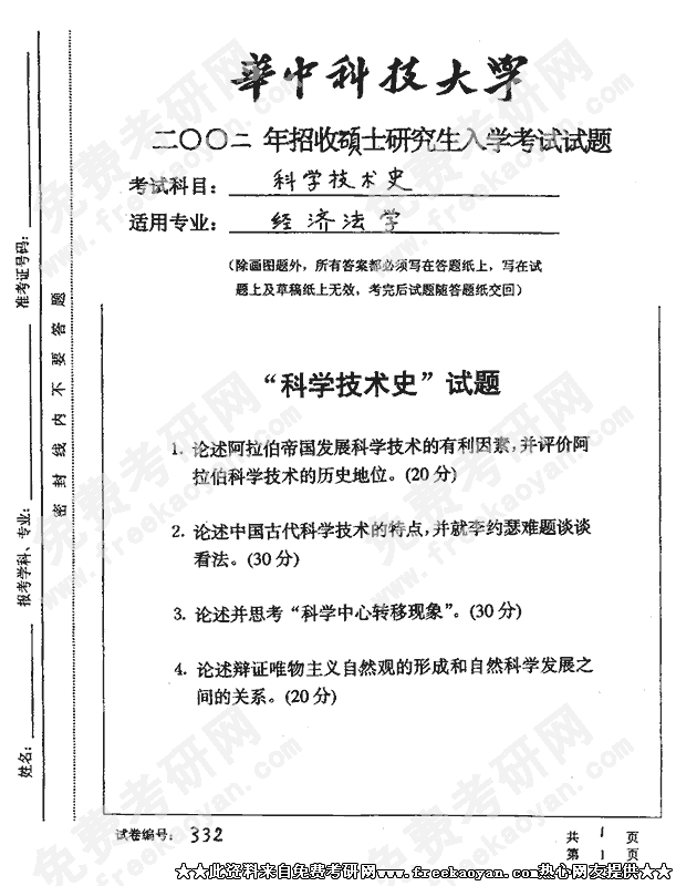 专业课考研经验 本站小编 FreeKaoyan 2018-01-22华中科技大学2002年考研真题-历史唯物主义