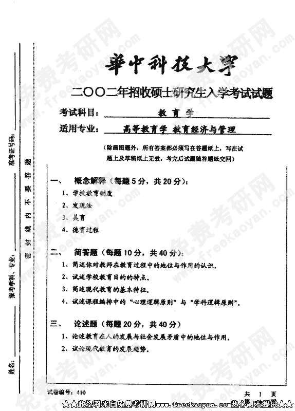 专业课考研经验 本站小编 FreeKaoyan 2018-01-22华中科技大学2002年考研真题-金属材料学