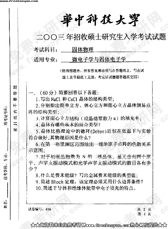 华中科技大学2002年考研真题-建筑设计及其理论综合考试(一)