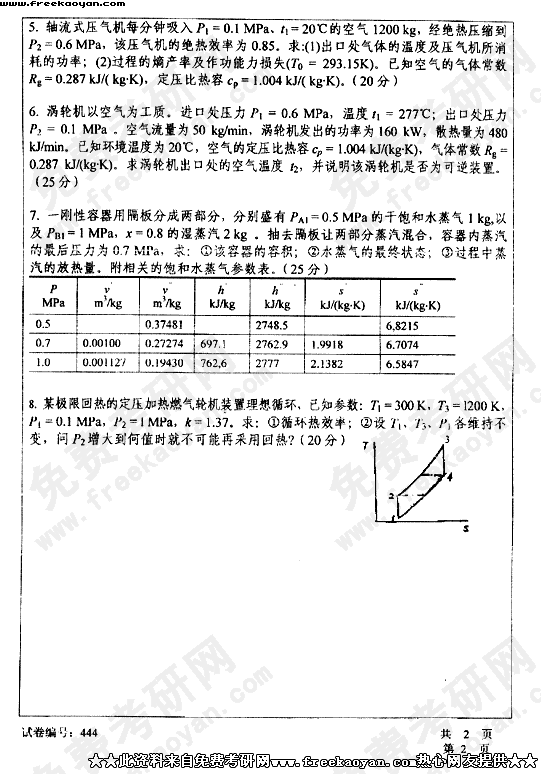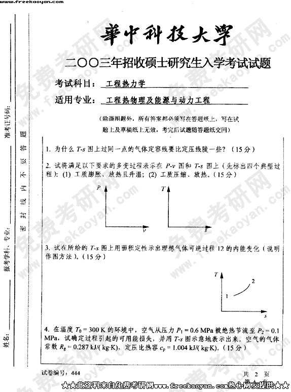 华中科技大学2003年考研真题-工程热力学
