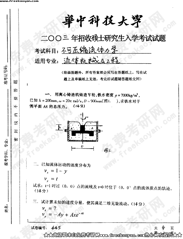 华中科技大学2003年考研真题-材料力学(岩土工程、道路与铁路工程)