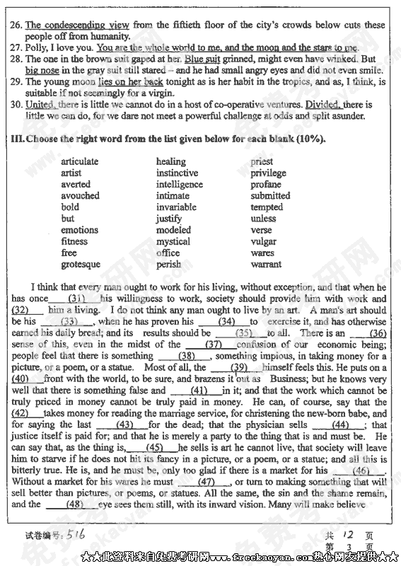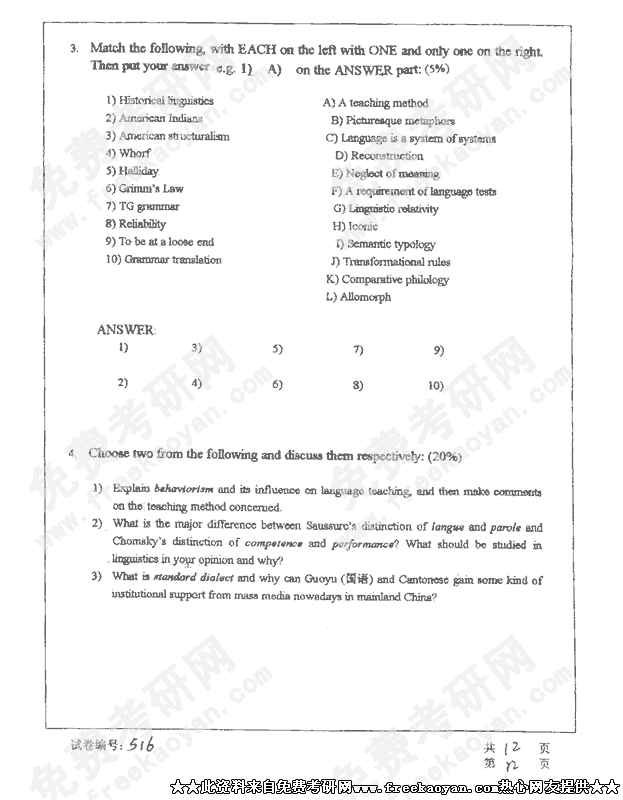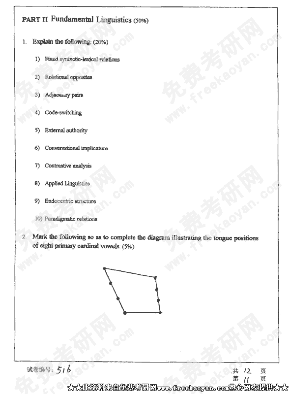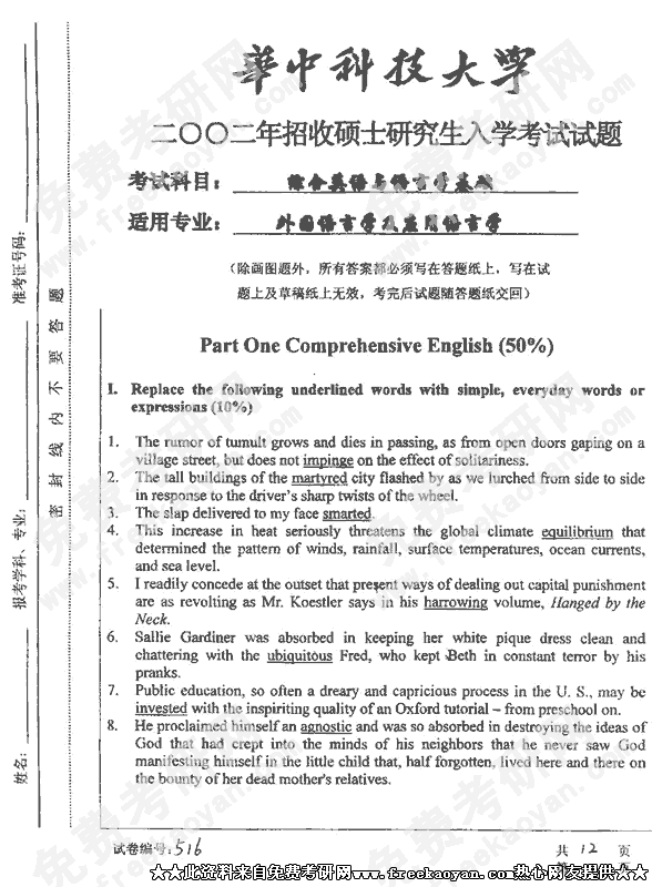 华中科技大学2002年考研真题-综合英语与语言学基础