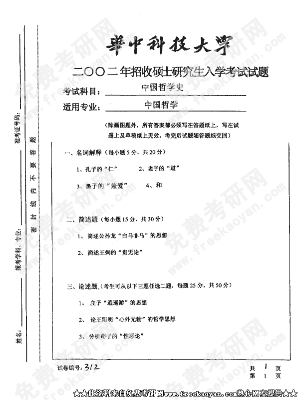 专业课考研经验 本站小编 FreeKaoyan 2018-01-22华中科技大学2002年考研真题-自然辩证法