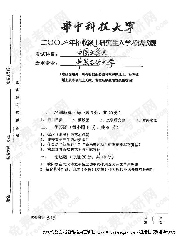 专业课考研经验 本站小编 FreeKaoyan 2018-01-22华中科技大学2002年考研真题-综合英语与语言学基础